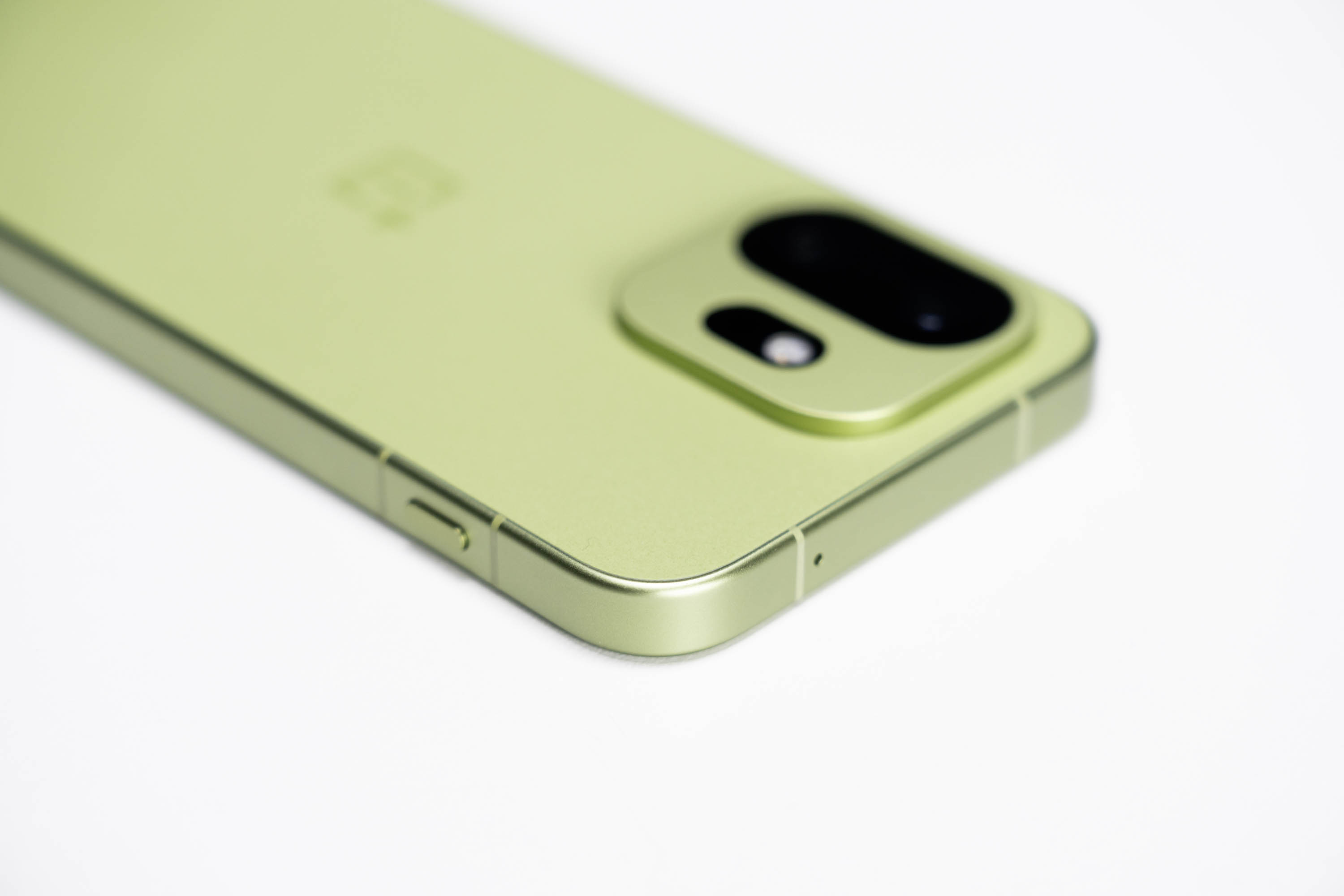 一加在机身材质处理上延续了品牌一贯的高水准。机身采用特殊的AG磨砂工艺处理,触感细腻丝滑,同时有效避免了指纹沾染的问题。值得一提的是,松弛抹茶配色的后壳在阳光下会呈现出细微的珠光效果,这是因为在涂层中添加了特殊的云母颗粒,让整机在保持低调的同时又不失精致感。边框采用航空级铝合金材质,经过阳极氧化处理与机身颜色完美融合,过渡自然流畅。