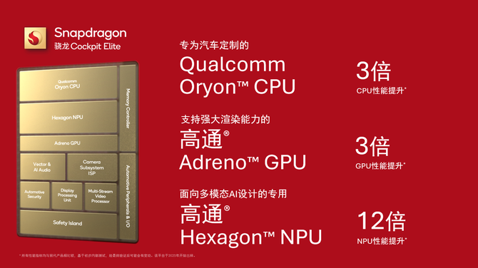 作为豪华智能座舱体验的技术基石,骁龙座舱平台至尊版搭载的Oryon CPU专为汽车定制,性能提升约3倍,让每一次交互都丝滑顺畅;Adreno GPU实现3倍的性能升级,支持神行者的智能座舱实时高效渲染,轻松驾驭120万面高精度3D建模。无论是沙漠、草原还是雪地,都能在座舱内真实还原。所见即所行,所行皆沉浸。而让一台车真正“懂你”的,是AI能力的跃升。专用NPU带来的12倍AI性能提升,为神行者铺就了一块坚实的算力底座,支撑全球首发的i-ATS智能全地形系统。