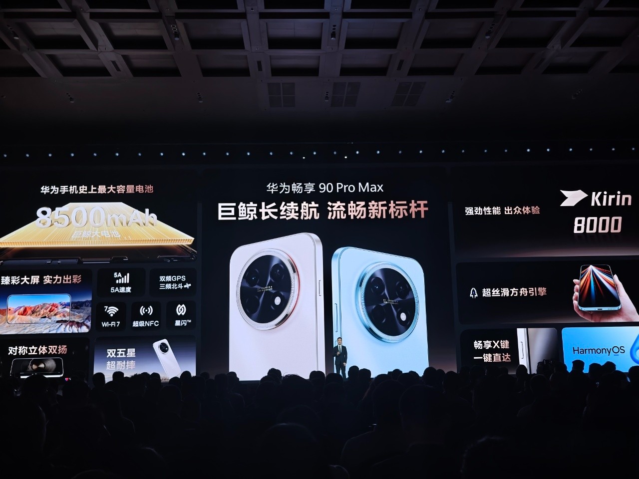 参考本月开售的华为畅享 90 Pro Max,该机已搭载华为手机史上容量较高的 8500mAh 巨鲸电池。如果万级大电池方案落地,再叠加电池容量释放率优化技术,华为中端产品线新机将拥有更强的续航表现。
