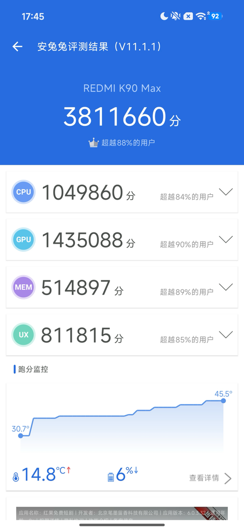 经过实际测试可以看到,在常温的状态下,安兔兔的跑分来到了381W,轻松胜任绝大部分的游戏。