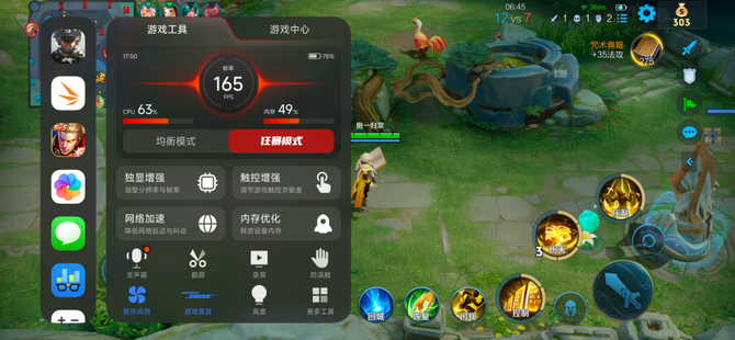 我们使用王者荣耀进行测试,默认帧数为144FPS,在开启超分插帧之后,游戏帧数来到了165Hz,整个画面更加丝滑,配合上之高480Hz的多指触控回报率和3500Hz瞬时触控采样率,整个体验非常跟手,并且我们连续4个小时的王者荣耀测试,电量也仅掉了45%,续航表现非常给力。