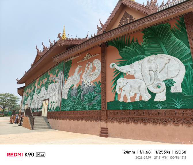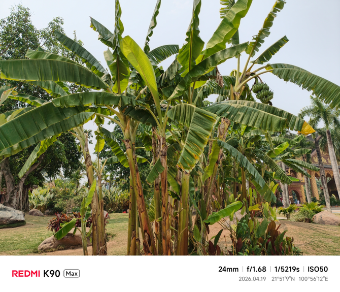 可以看到REDMI K90 Max在解析力表现和色彩还原度方面表现优秀,基本能够还原被拍摄主体的细节,譬如芭蕉叶的细节,以及寺庙地砖的缝隙等,都没有做过度的数码渲染,用来进行日常拍摄完全没有任何问题。