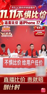 姜惠田 · 2025-11-03 11:07 - 京东3C数码采销直播间现场连麦比价 提供线索有效即送iPhone17
