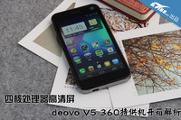 今天我们开箱的deovo V5 360特供机售价为1499元,低廉的价格却可以享受目前主流的四核处理器、IPS高清屏幕等高端配置。机身整体做工也还算不错,可算的上严丝合缝。相比那些国产大品牌来的更实际一些。在Android4.0操作系统的环境下预装了许多360看家软件,省去了新机到手还要装许多软件的麻烦事。