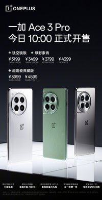 一加于上周推出的王牌机型一加 Ace 3 Pro已经在7月3日早上10点正式开售了,凭借搭载的骁龙 8 Gen 3 处理器、6100mAh冰川电池、新一代东方屏、《原神》原生120帧游戏体验等优势,该机备受消费者关注,如今开启首销,起售价3199元。