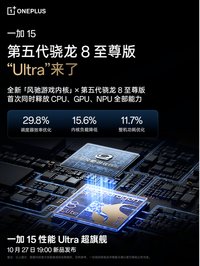 块全球最先进的屏幕,将由本月正式亮相的「性能Ultra」一加 15 首发搭载。一加 15 拥有简约的设计与出色的质感,在第五代骁龙 8 至尊版移动平台与全新一代「风驰游戏内核」的强强联合下,将带来「Ultra级」性能表现。