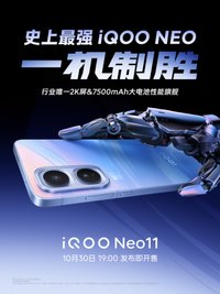 - 行业唯一2K屏+7500mAh大电池性能旗舰 iQOO Neo11官宣